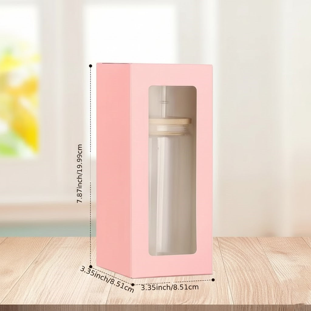 Keresi a tökéletes csomagolást sublimációs üvegpoharaihoz, karcsú termoszaihoz, vagy egyedi ajándékaihoz? Ez a gyönyörű rózsaszín karton doboz átlátszó ablakkal és elegáns fehér szalaggal ideális választás, ami azonnal kiemeli termékét!