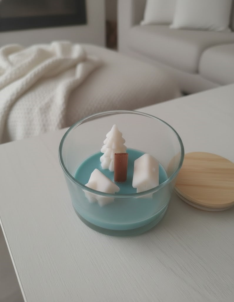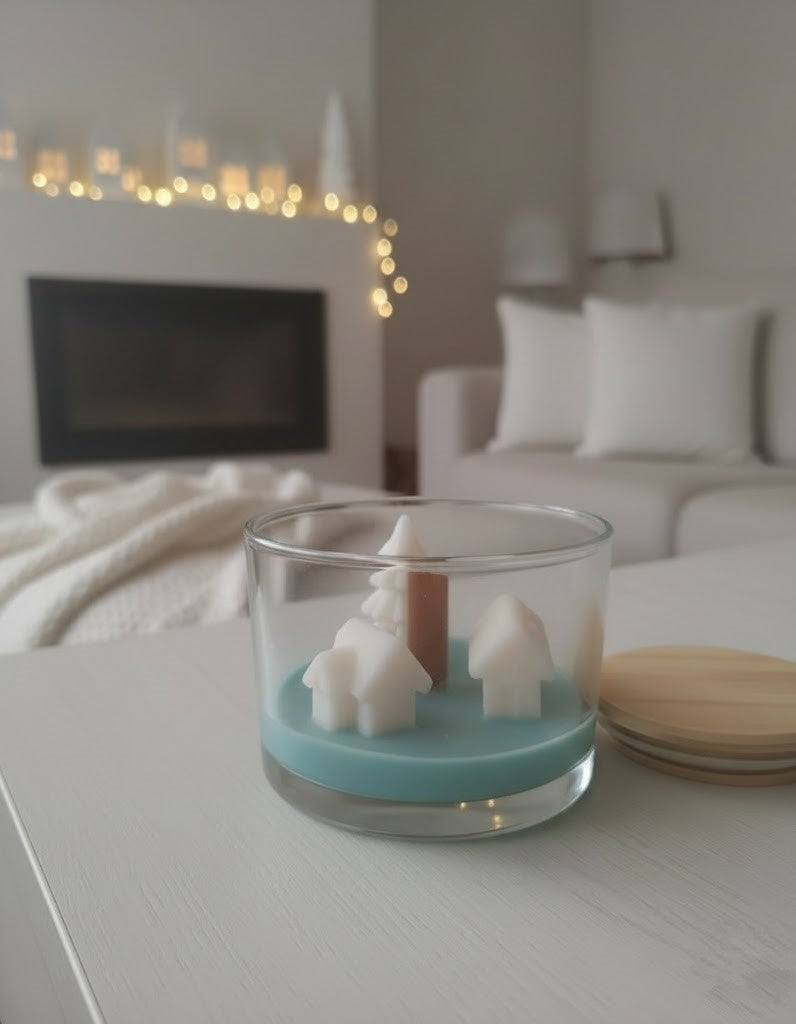 Ez a bájos, Pandaura által készített, egyedi gyertya a téli béke pillanatait idézi: két havas házikó és egy apró karácsonyfa rejtőzik a tengerkék gyertya szívében. A meghitt atmoszférát a gyertya anyaga garantálja: kizárólag 100% szója viaszból készült, ami tiszta és hosszan tartó égést biztosít.