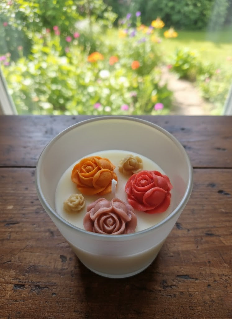 Virágos Szójaviasz Illatgyertya Színes Rózsa Díszítéssel